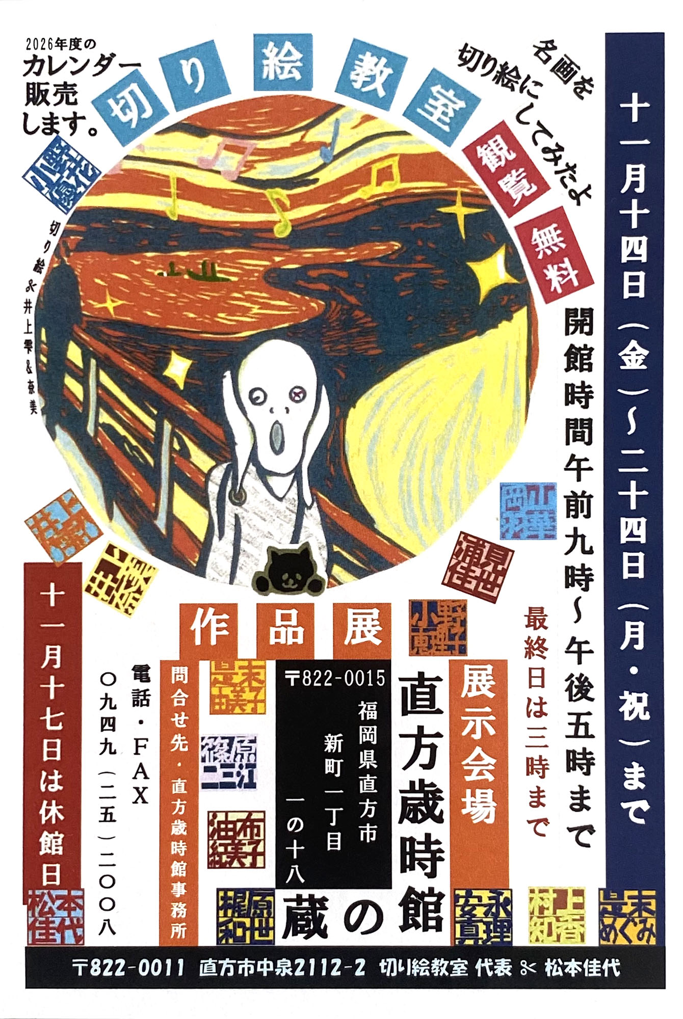 教室のみなさんで作った作品を使用した「2026年切り絵卓上カレンダー」の販売もありますので、ぜひご来場ください!